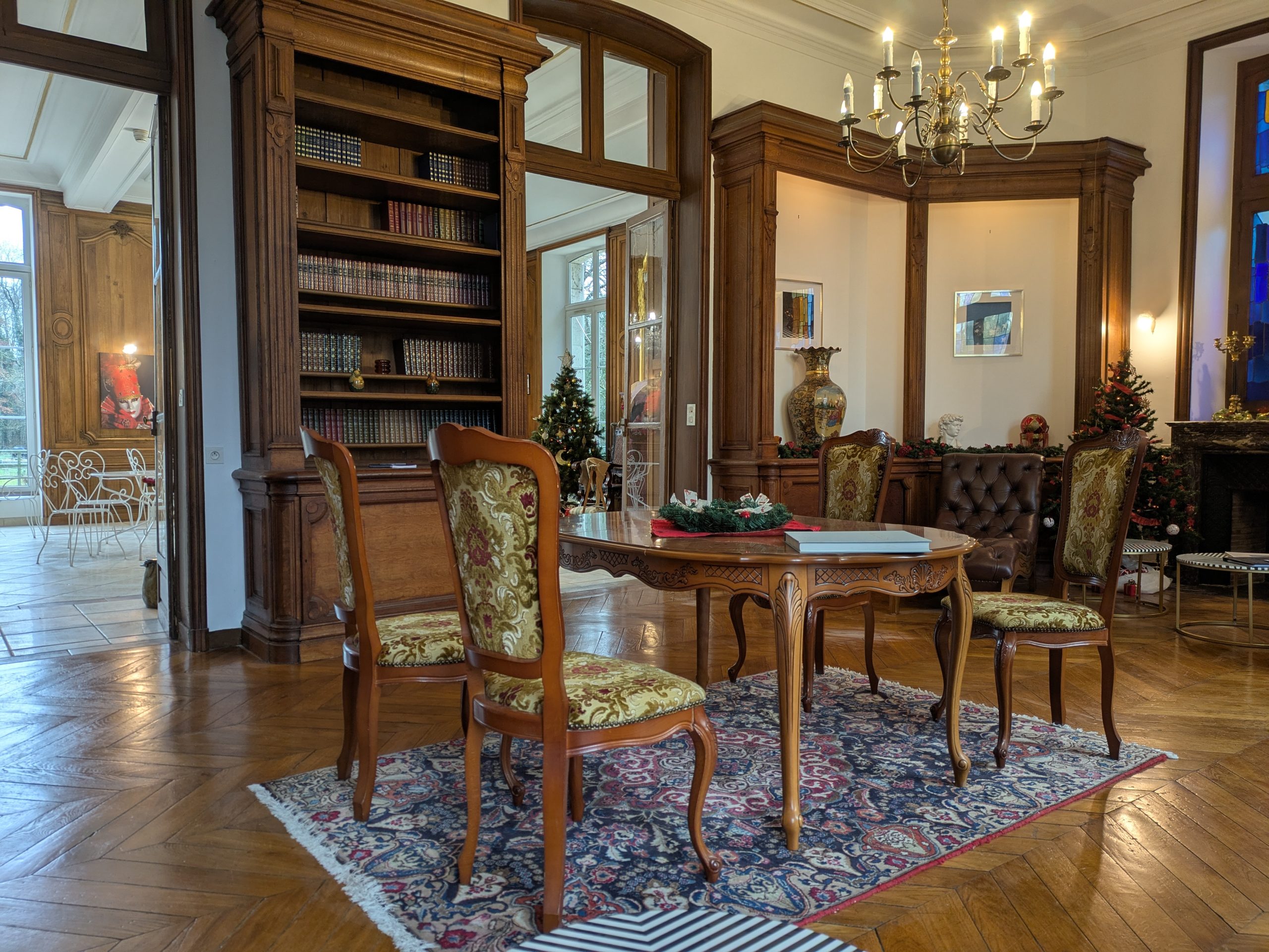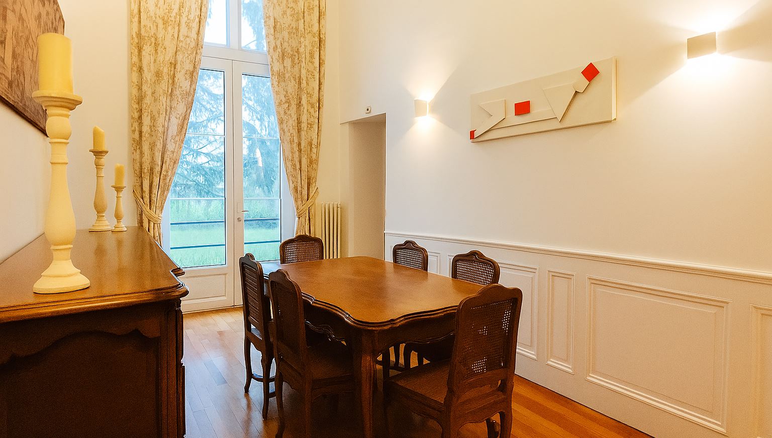 Facing the château, the manor offers three adjoining rooms with a total capacity of 150 guests. Air‑conditioned and bathed in natural light thanks to large bay windows, it features a club‑style ambiance and breathtaking views of the estate. Ideal for cocktail receptions, corporate evenings, or collaborative workshops. A dedicated catering kitchen ensures seamless, professional service.